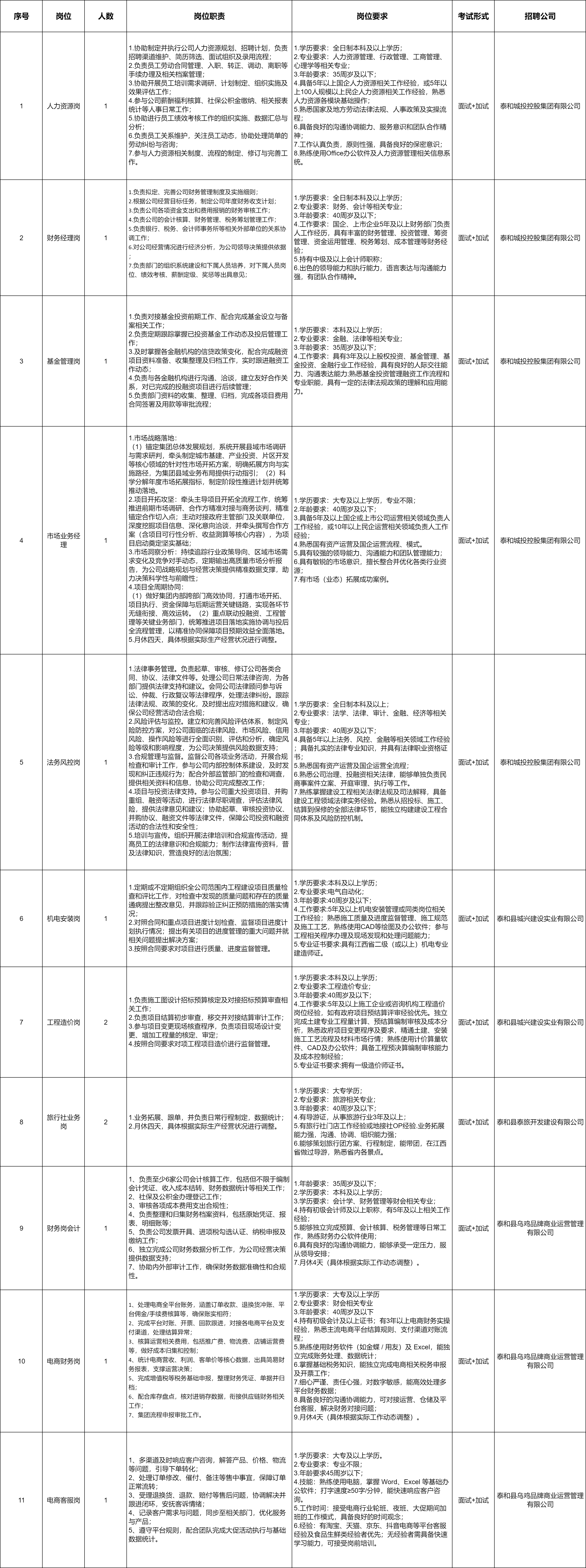 原文标题:2026年泰和城投控股集团及下属子公司面向社会公开招聘公告